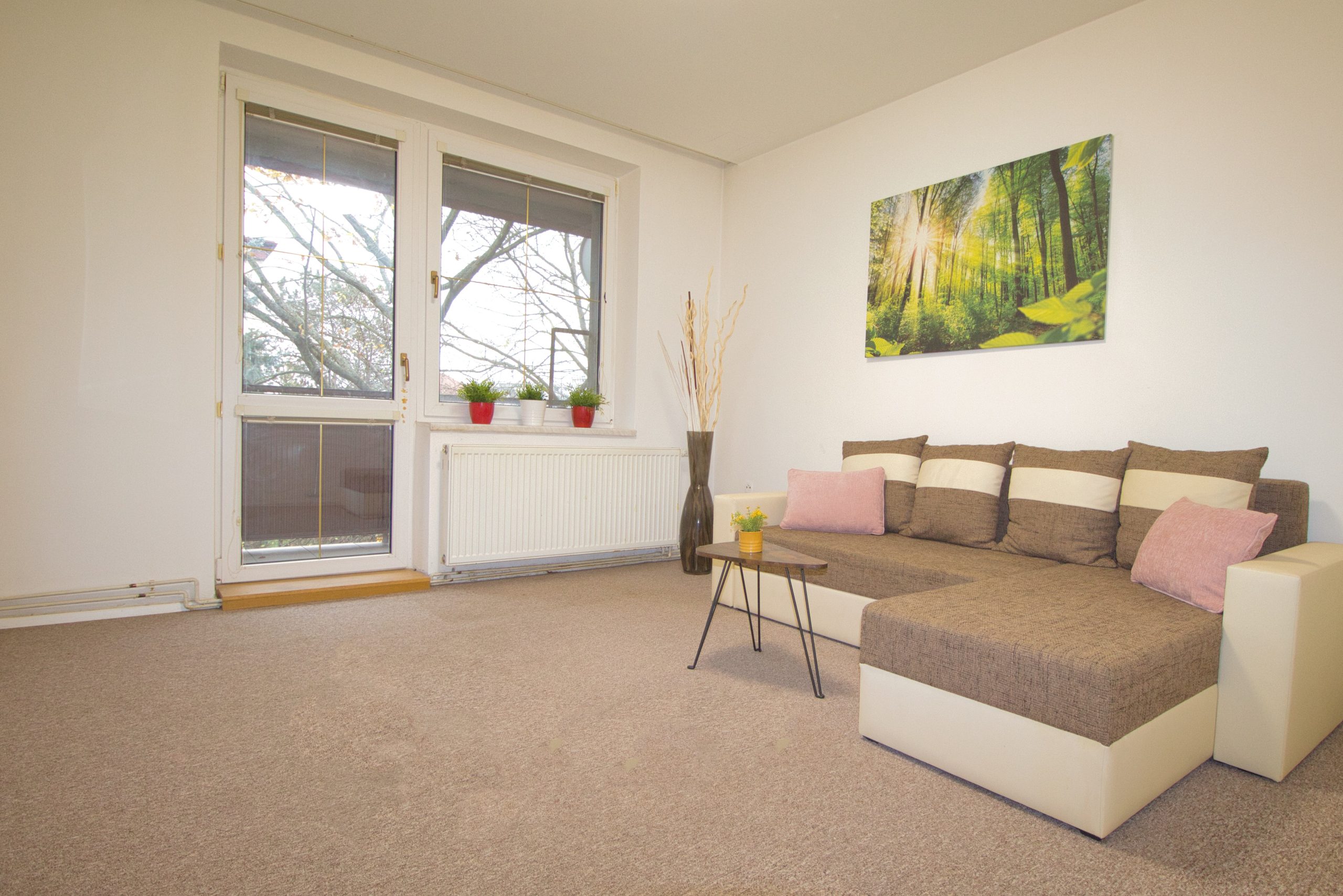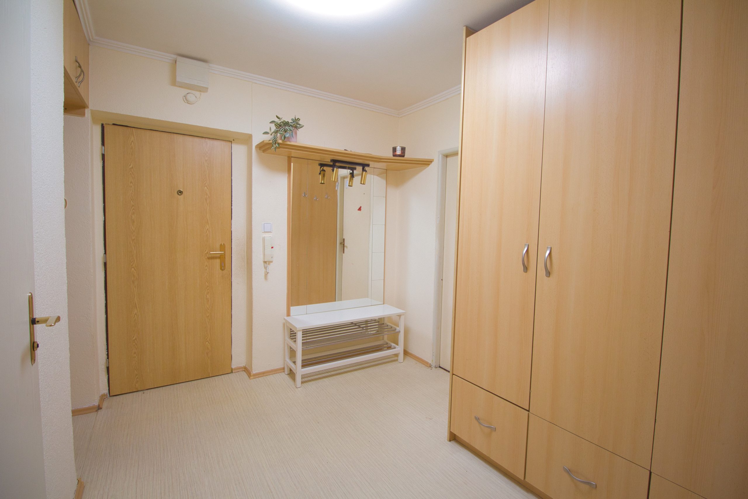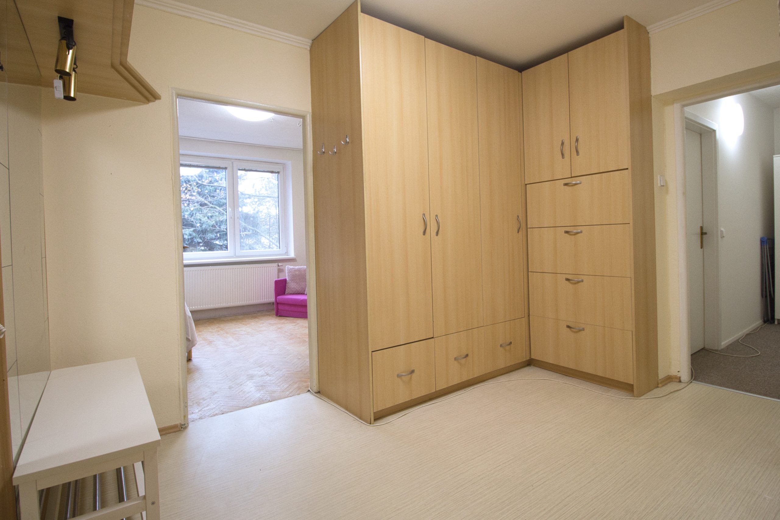 DISPOZICE BYTU: Prostorná vstupní chodba se šatními skříněmi pro maximální úložný prostor. Světlá kuchyň s oknem a praktickým jídelním koutem. Obývací pokoj po kompletní rekonstrukci s přístupem na balkon orientovaný do klidné zeleně. Dětský pokoj a ložnice – ideální pro rodinné bydlení. Moderní koupelna po rekonstrukci se sprchovým koutem. BONUS: Nadstandardně velký sklep 20 m² – vzácnost, kterou ocení každý!